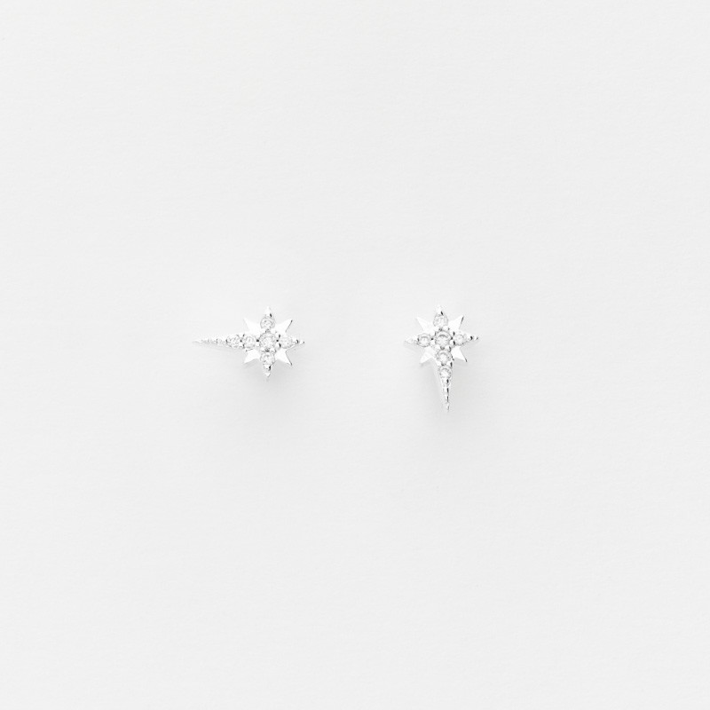 Boucles d'oreilles en argent, représentant deux petites étoiles filantes ornées d'oxydes blancs.