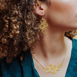 - Matériaux utilisés pour ce bijou: Laiton, finition bain d'or brossé et vernis de protection