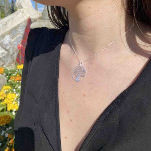 Collier en argent arbre de vie qui symbolise la force de la vie et ses origines, l'importance des racines et le développement de la vie.