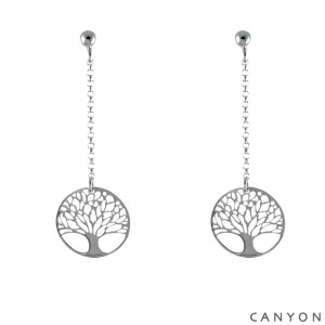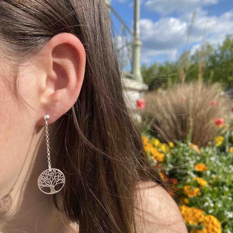 Boucles d'oreilles pendantes en argent arbre de vie qui symbolise la force de la vie et ses origines, l'importance des racines et le développement de la vie.