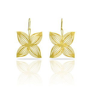 De jolies boucles d'oreilles représentant une fleur dont les pétales harmonieux sont ajourés.