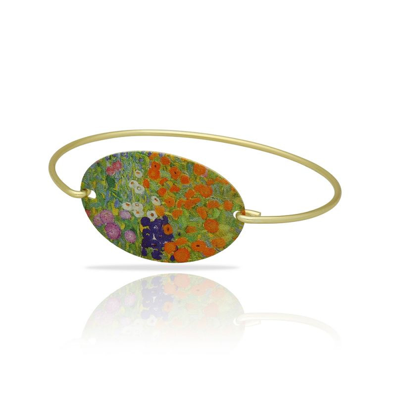 La Collection de bijoux "Mil Flores" de cet atelier s'inspire de la peinture "Jardin de campagne" de Gustav Klimt. Dans une palette riche et éclatante, aux couleurs vives et saturées, Klimt puise son inspiration dans la peinture française (Monet, Seurat...) à partir de 1909 pour réaliser des toiles au format carré, représentant des fragments de paysages / nature.