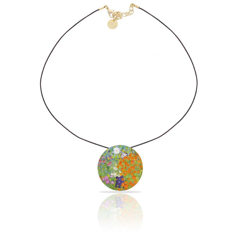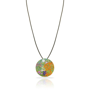 La Collection de bijoux "Mil Flores" de cet atelier s'inspire de la peinture "Jardin de campagne" de Gustav Klimt. Dans une palette riche et éclatante, aux couleurs vives et saturées, Klimt puise son inspiration dans la peinture française (Monet, Seurat...) à partir de 1909 pour réaliser des toiles au format carré, représentant des fragments de paysages / nature.