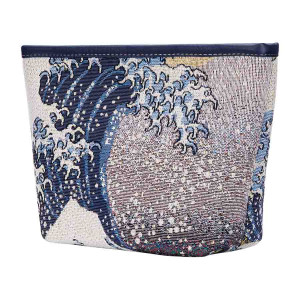 Trousse vintage en tapisserie de haute qualité représentant la célèbre oeuvre La Vague d'Hokusai. La particularité de ce tissu est que les motifs ne sont pas imprimés, mais tissés, ajoutant un charme supplémentaire à cette pochette. Trousse pour un usage quotidien avec fermeture éclair et 2 compartiments intérieurs.