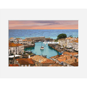 La scène se passe à l'Île de Ré. Dans chaque composition de Philippe Matine, une bulle vous invite à imaginer la suite de l'histoire...