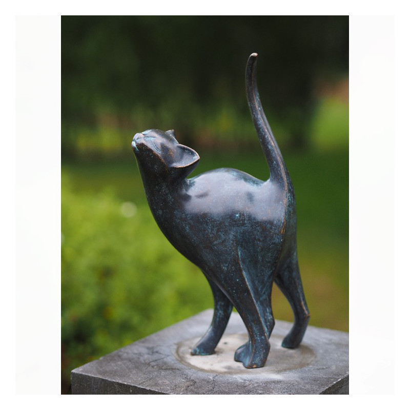 Élégante sculpture extérieure ou intérieure de hauteur 31 cm représentant un chat, en bronze massif, réalisée par l'artiste flamand Ben Wouters.