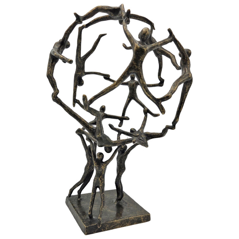 Sculpture extérieure ou intérieure de hauteur 37 cm représentant des personnages en équilibre réalisant une sphère humaine. Cette pièce est en bronze massif et a été réalisée par l'artiste flamand Ben Wouters.