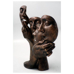 Passionné(e) de théâtre ou de chant? Cette sculpture évoque ces arts de la scène. Elle peut également représenter la communication, la vie sociale.