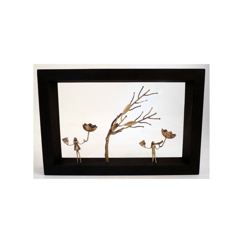Cette sculpture en bronze entourée d'un cadre noir en bois, est une création unique et originale de l'artiste grec Georges Roumanas.
