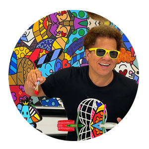 Romero Britto: Icône du Pop Art, cet artiste mondialement connu utilise dans ses oeuvres des couleurs vibrantes et des motifs éclatants comme un langage visuel et universel. Ses créations sont emplies de symboles à travers lesquels il cherche à transmettre l'espoir et la joie de vivre, comme le fil rouge de son art. La reconnaissance de son talent au niveau international est telle que cet artiste brésilien a présenté la plus grande installation artistique dans l'histoire de Hyde Park à Londres. Il a également été invité à exposer ses œuvres au Musée du Louvre. Une oeuvre contemporaine esthétique, accessible et résolument positive, à même de toucher et séduire chacun d'entre nous!