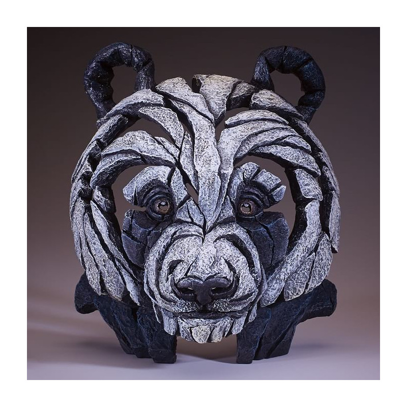 Cette sculpture contemporaine, aux lignes modernes et graphiques, représente une tête de panda. Il s'agit d'une création originale du sculpteur anglais Matt Buckley / atelier Edge.