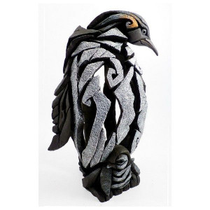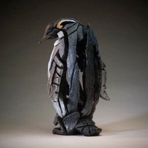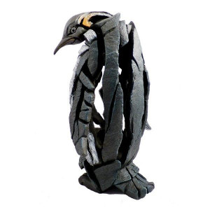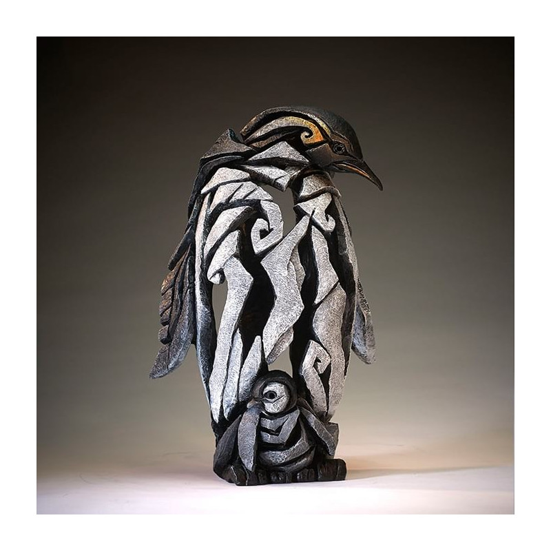 Cette sculpture animalière contemporaine, aux lignes modernes et graphiques, représente un pingouin / manchot qui protège son petit. Il s'agit d'une création originale du sculpteur anglais Matt Buckley / atelier Edge.