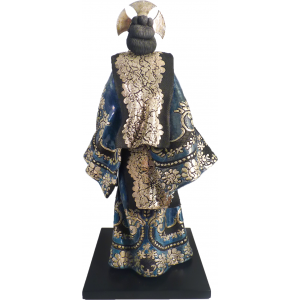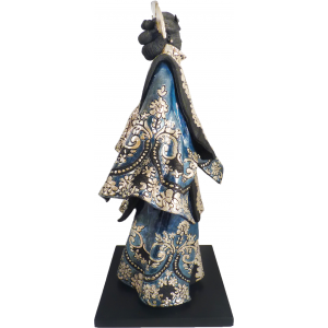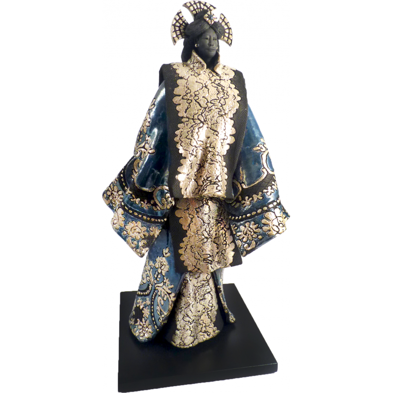 Cette pièce unique en céramique cuite façon raku a été réalisée par l'artiste Paul Beckrich. Dans sa somptueuse tenue traditionnelle, cette geisha nous invite à admirer le raffinement de la culture japonaise.