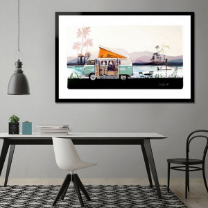 Un joli van, une rivière, des montagnes, un paddle... Laissez-vous embarquer dans une superbe aventure avec cette illustration réalisée par l'artiste Sophie Griotto.