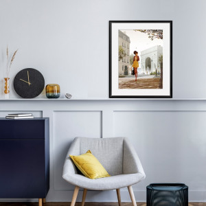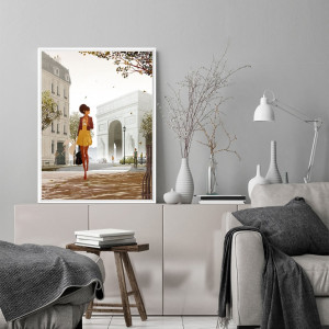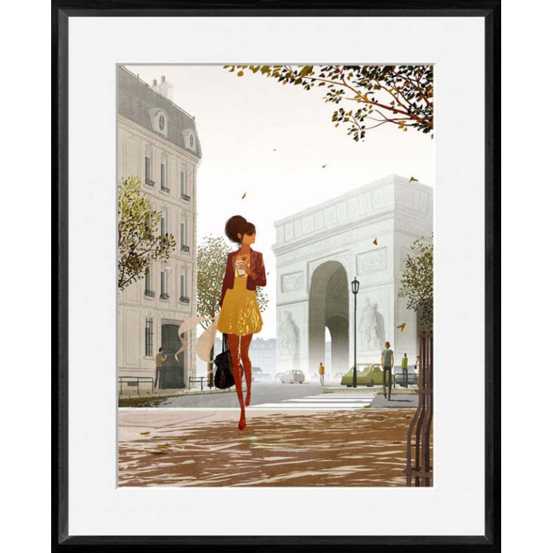 Dans ce nouveau cadre de Matthieu Forichon, une femme, à la silhouette élégante, se balade dans les rues de Paris, le regard ailleurs et le café en main. Les feuilles d'automne sont déjà tombées... Ce cadre est prêt à s'harmoniser avec votre salon.