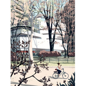 Une vue sur le musée Guggenheim de New York entouré de végétation aux couleurs automnales nous est proposée par l'artiste Matthieu Forichon.