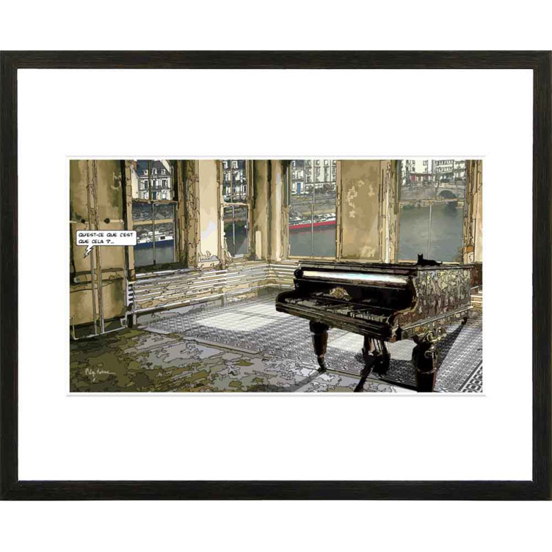 Nous vous présentons le résultat d'un beau projet réalisé avec l'artiste Philippe Matine: de magnifiques toiles représentant la douceur angevine à laquelle nous sommes si attachés. Ici, dans un ancien appartement prestigieux laissé à l'abandon, un magnifique piano à queue s'impose à nous. Le fameux chat noir si cher à l'artiste y a trouvé une place pour se reposer, et il semble observer avec nous la vue sur la Maine.