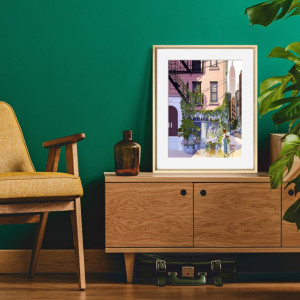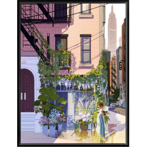 Un tableau de Matthieu Forichon, mettant en scène la jolie devanture d'un fleuriste, accentuée par l'architecture new-yorkaise.