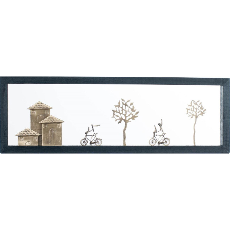 Cette sculpture en bronze entourée d'un cadre noir en bois peint, est une création unique et originale entièrement réalisée à la main par l'artiste grec Georges Roumanas.