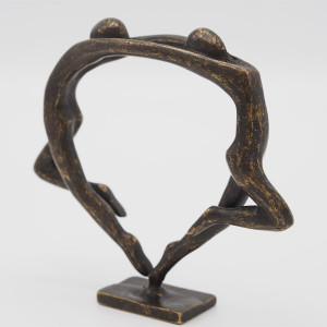 Sculpture moderne représentant un couple tout en symétrie, dont les bras tendus se joignent, formant une figure harmonieuse. Cette pièce est en bronze massif travaillée à la cire perdue et est signée par l'artiste flamand Ben Wouters.