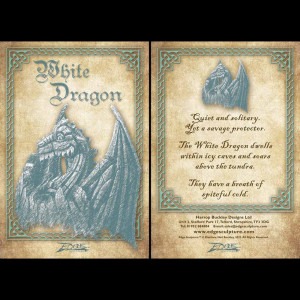 - DRAGON BLANC: "Calme et solitaire, néanmoins protecteur féroce, le dragon blanc habite dans des grottes de glace et plane au-dessus de la toundra, son souffle répand un froid terrible"