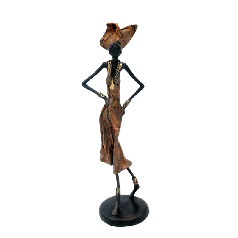 Statuette en bronze massif fabriquée à la cire perdue, réalisée dans l'atelier de l'artiste Issouf Bonkoungou à Ouagadougou.