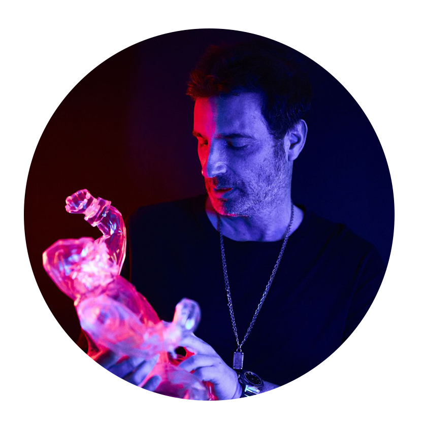 Richard Orlinski est depuis 2015 un des artistes contemporains français les plus connus dans le monde. Il commence sa carrière artisitique en 2004, et crée sa première oeuvre, un crocodile en résine couleur rouge vif, devenue très vite une pièce iconique du bestiaire du sculpteur. L'artiste puise son inspiration à travers la pop-culture, les objets du quotidien, le populaire. Rapidement, il développe de nouvelles sculptures, souvent des animaux, tous symboles de liberté, de puissance et de passion. En résulte des oeuvres électriques, aux couleurs pop et au style facetté si caractéristique! Les Wild Kong sont ses oeuvres les plus populaires. Animé par la volonté de démocratiser l'art et le rendre accessible au plus grand nombre, Richard Orlinski s'intéresse à tous les moyens d'expression et son art ne connait aucune frontière.