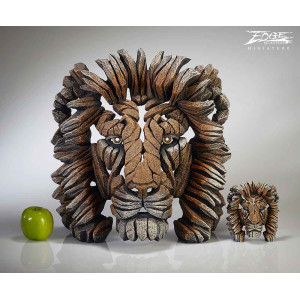 Grâce aux progrès technologiques, l'atelier Edge élabore désormais une partie de ses pièces en version miniaturisée, en utilisant le même matériau de moulage de qualité (poudre de marbre) et le même design (même peinture), le but étant de conserver une ressemblance identique à la sculpture originale beaucoup plus grande. Pari réussi, ces statuettes procurent la même émotion. Le regard profond de ce lion est d'une grande intensité tout comme son prédécesseur.