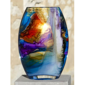 Ses œuvres aux formes épurées se distinguent par leurs couleurs hors du commun. Associations intenses, l’or s’amourache du pourpre, les bleus irradient de rouge, les verts s’imprègnent de nature. Verre et cristal rivalisent de densité et de transparence pour révéler des ballets chromatiques et jeux de lumière inattendus.