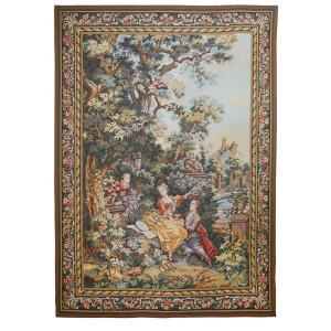 Dans un cadre «Mille-Fleurs », d’élégants personnages s’adonnent aux jeux, à la lecture ou à la musique. Cette scène, pleine de grâce et de poésie, est la représentation d’un art de vivre de la fin du XVe siècle.