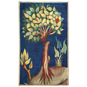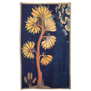 Extrait de l’une des six tapisseries de la Tenture de l’Apocalypse d’Angers tissée à la fin du XIVe siècle par Nicolas Bataille d’après les cartons d’Hennequin de Bruges pour le Duc Louis 1er d’Anjou. Les couleurs comme le décor de cette Tenture, bien qu'ayant un aspect contemporain, sont les caractéristiques fidèles de la tapisserie d'origine.