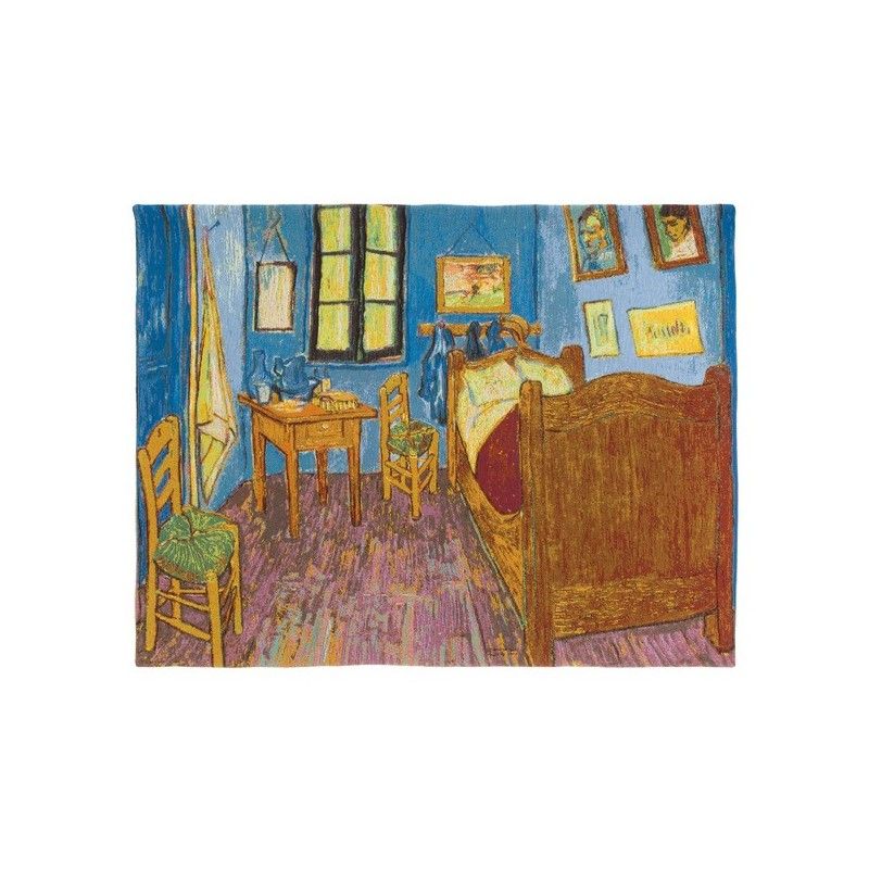 Cette tapisserie est inspirée d'une œuvre de Vincent Van Gogh (1853-1890) peinte en 1889. Ce tableau représente la chambre de l'artiste lorsqu'il s'installe à Arles en 1888. Van Gogh est un peintre tourmenté qui a connu Paul Gauguin, Camille Pissarro, Georges Seurat, Paul Cézanne, Henri Toulouse-Lautrec... Il s'inspire de l'impressionnisme, du pointillisme et du synthétisme pour créer un style unique, reconnaissable entre tous. Van Gogh peint notamment des natures mortes, mais aussi des portraits, et des scènes de rue par exemple. C'est un artiste qui a énormément produit et dont les œuvres se vendent aujourd'hui une fortune.