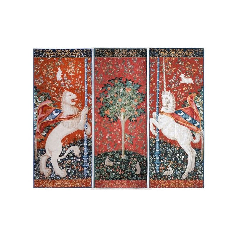 Tapisseries du lion, de l'oranger et de la licorne extraites de la tenture intitulée 'La Dame à la Licorne'.