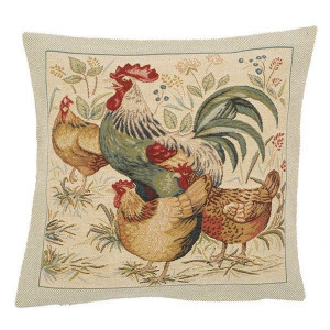 Cette création s'inspire des tentures du XVIIIe siècle pendant lequel Marie-Antoinette (1755-1793), reine de France, montra un certain intérêt pour les scènes de la vie rurale. Tous les grands peintres de cette époque furent alors sollicités pour illustrer la campagne sous ses différents aspects. Cette représentation très réaliste d’un poulailler, où poules et coq picorent, en est un exemple.