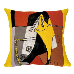 Le dessin de cette housse de coussin moderne a été réalisé par l'artiste Julien Colombier, puis adapté au métier Jacquard pour être tissé dans les ateliers Jules Pansu situés dans les Flandres françaises. Armé de pastels et de craies, Julien Colombier aiguise une technique qui occupe l'espace par la collision des couleurs, dont il se sert comme source de lumière. Les figures géométriques qu'il dessine deviennent prétextes à ces contrastes et le réel se distord, à la limite de l'abstraction.