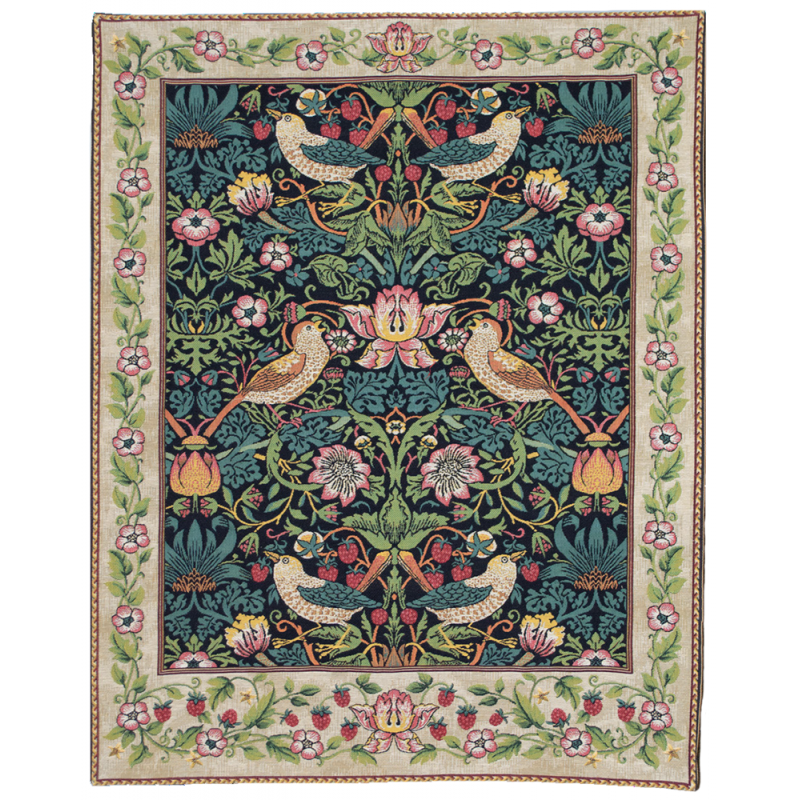 Cette tapisserie a été réalisée d'après un textile conçu par William Morris (1834-1896), nommé "The Strawberry Thief". Elle est livrée doublée et prête à poser au mur. Un certificat d'authenticité est apposé au dos.