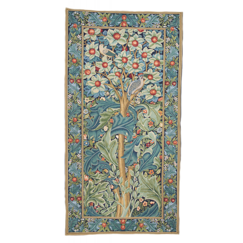 Cette tapisserie a été réalisée d'après un textile conçu par William Morris (1834-1896), nommé "Woodpecker". Elle est livrée doublée et prête à poser au mur. Un certificat d'authenticité est apposé au dos.