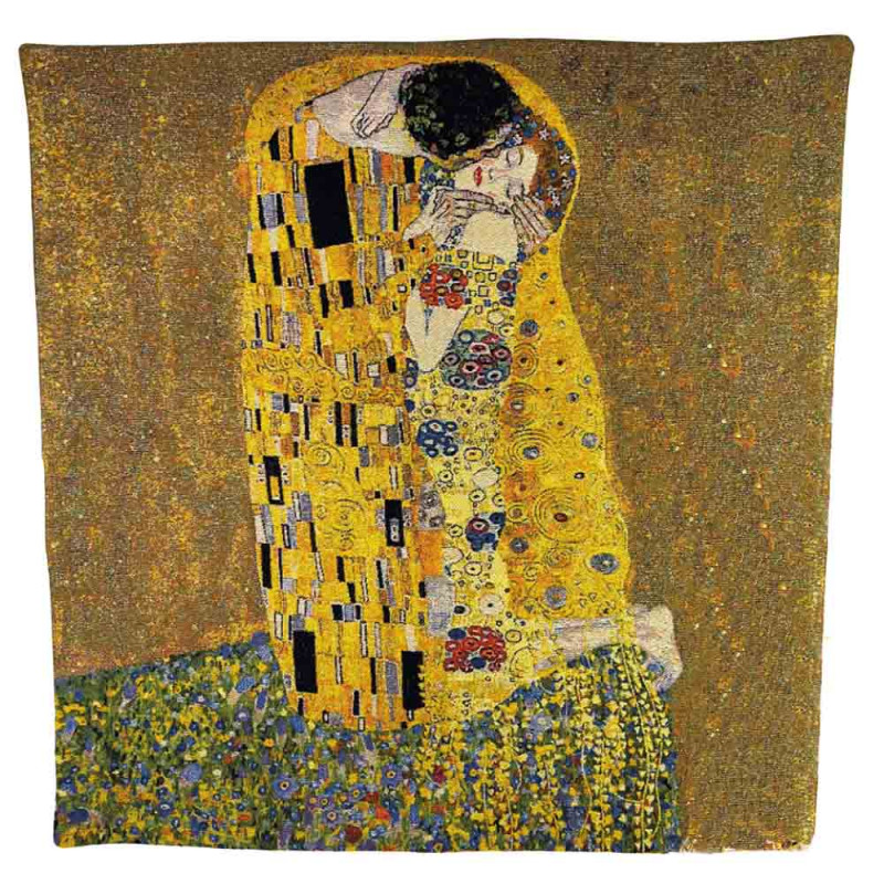 Tapisserie tissée d'après l'œuvre la plus célèbre de Gustav Klimt (1862-1918). Gustav Klimt était un peintre symboliste autrichien, et l'un des membres les plus en vue du mouvement Art Nouveau de Vienne. La profusion des détails, la richesse des décors souvent dorés et de la coloration en sont caractéristiques.