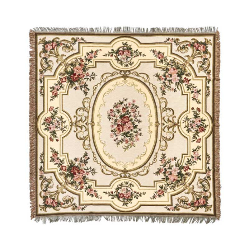 Un plaid aux motifs tissés très raffinés et au style rococo.