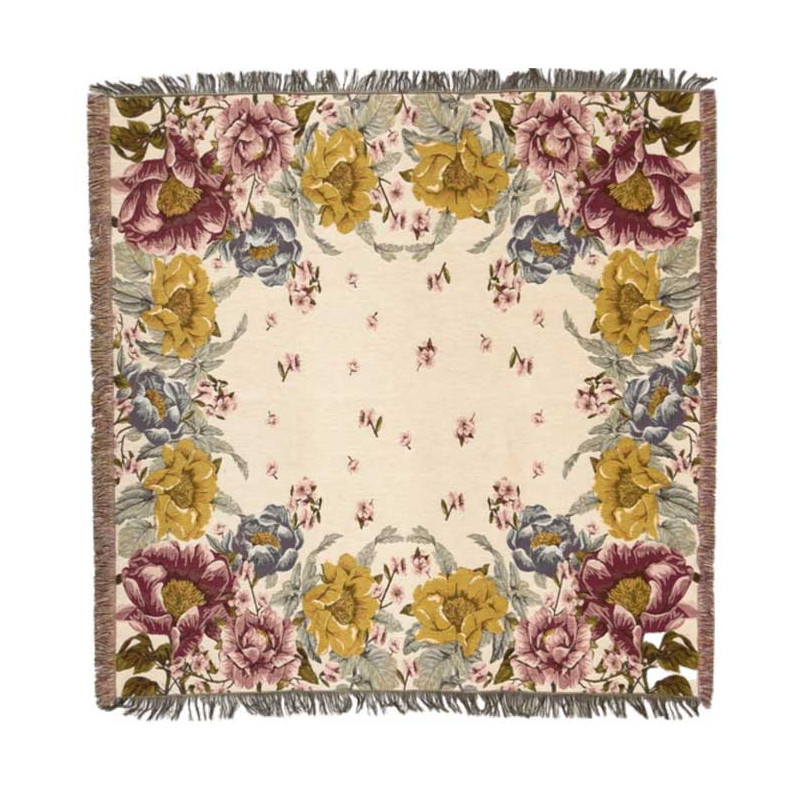 Un magnifique plaid aux motifs tissés de multiples fleurs.