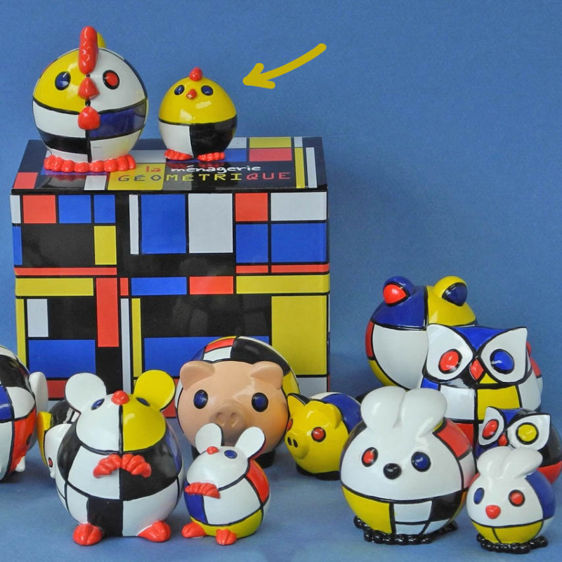 Mondrian's Geometric Model Animals is a collection of small, hand-painted graphic animals inspired by the work "Composition in Red, Yellow, Blue, and Black" by painter Piet Mondrian, one of the pioneers of abstract art.