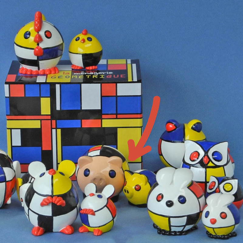 Mondrian's Geometric Model Animals is a collection of small, hand-painted graphic animals inspired by the work "Composition in Red, Yellow, Blue, and Black" by painter Piet Mondrian, one of the pioneers of abstract art.
