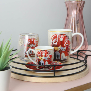 This candle holder decorated with cats boasts beautiful colors, including a superb predominance of romantic red. It is part of the "Temple of Love" collection.