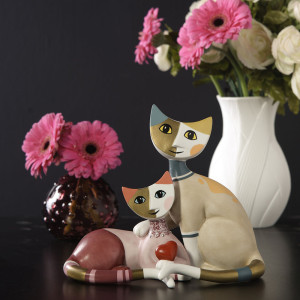 Rosina Wachtmeister lives in the small and old town of Capena, located in the north of Rome where many cats are living. The locals call the historical center the "rocca" because this part of the town was a refuge in the middle ages. Today, the old sanctuary is Rosina Wachtmeister's charming home. With her friends, the artist has renovated a former church called San Michele Archangelo, where she still lives and works today. Rosina loves cats. They became a kind of symbol for her art. In partnership with Goebel, she created a series of playful cat figurines in hand-decorated porcelain.
