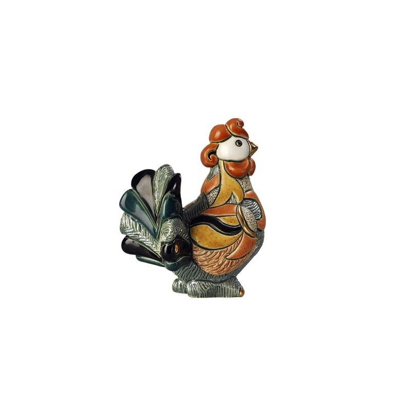This hen figurine is hand-painted with a colorful variety of ceramic slips and bright enamel glazes, then accented with platinum and gold.