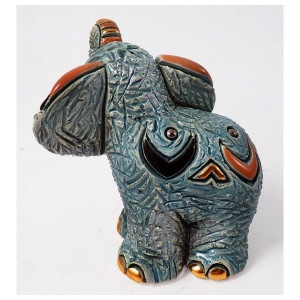 This baby elephant from Kenya is hand-painted with a colorful variety of ceramic slips and bright enamel glazes, then accented with platinum and 18 karat gold.