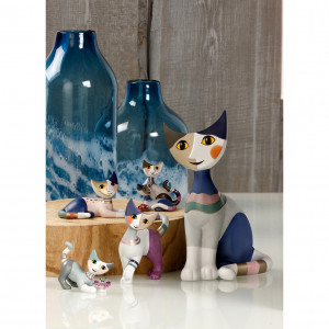 Rosina Wachtmeister lives in the small and old town of Capena, located in the north of Rome where many cats are living. The locals call the historical center the "rocca" because this part of the town was a refuge in the middle ages. Today, the old sanctuary is Rosina Wachtmeister's charming home. With her friends, the artist has renovated a former church called San Michele Archangelo, where she still lives and works today. Rosina loves cats. They became a kind of symbol for her art. In partnership with Goebel, she created a series of playful cat figurines in hand-decorated porcelain.
