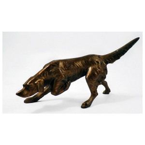This sculpture is signed by artist Harriet Dunn. Harriet is entirely self-taught and uses her love of the natural world to create animal sculptures. Her very clever Frith Dog sculptures which we show capture all the doggy mannerisms that we love.
