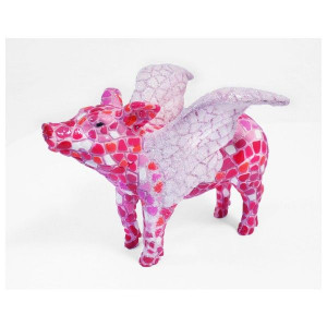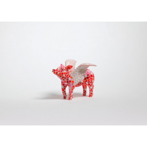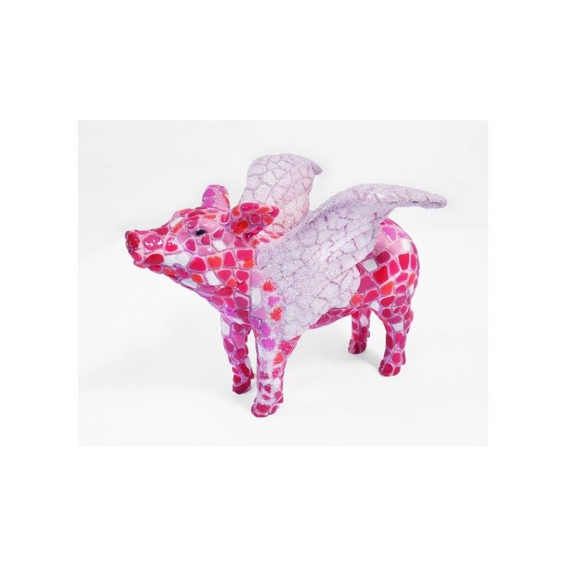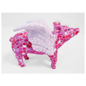 This mosaic pig figurine with glitter wings was created by hand in Barcino spanish workshop. Beautiful colours and traditional Catalan style are combined to make a good quality creation.