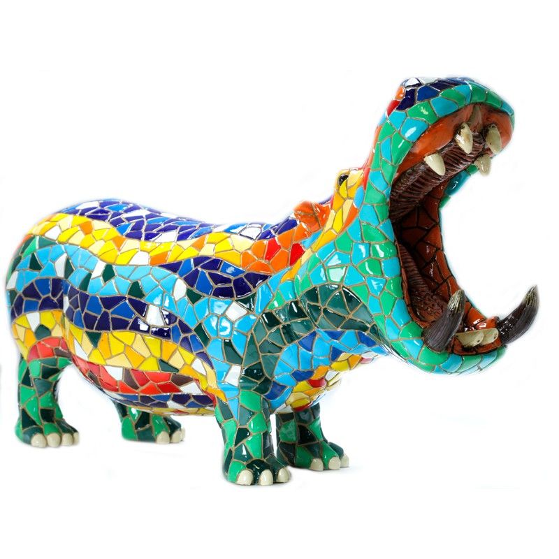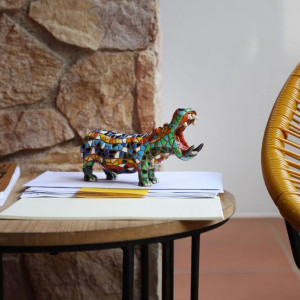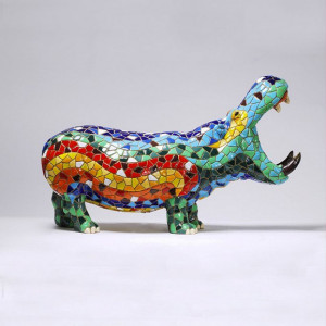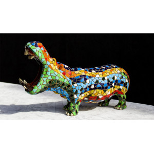 This mosaic hippo sculpture was created by hand in Barcino spanish workshop. Beautiful colours and traditional Catalan style are combined to make a good quality creation.